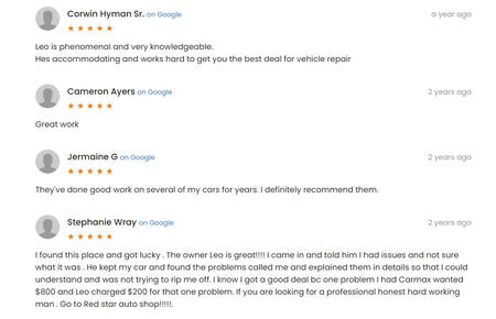 "Since opening our doors in 2012, we've navigated the ups and downs of life, including the COVID-19 pandemic, to continue serving our community. Our expert auto technician brings over 15 years of experience in the industry. At Redstar Auto Service, our mission is to keep your vehicle running smoothly and safely."